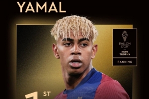體育資訊9月23日訊 2025年金球獎頒獎典禮今日進(jìn)行,18歲的亞馬爾獲得科帕獎(旨在表彰年度最佳U21球員),連續(xù)兩年獲得該獎項(xiàng)。