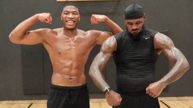 照片中,詹姆斯與八村塁大秀肌肉,湖媒Lakers Daily轉(zhuǎn)發(fā)并配文:積極備戰(zhàn)新賽季!