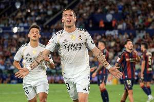 體育資訊09月24日訊 西甲第6輪,皇馬客場(chǎng)4-1大勝萊萬(wàn)特,18歲的皇馬小將馬斯坦托諾首發(fā)出戰(zhàn)71分鐘,收獲加盟球隊(duì)后的首粒進(jìn)球。