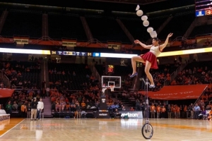 每次登臺(tái)之前,她會(huì)檢查她的獨(dú)輪車(chē),這臺(tái)獨(dú)輪車(chē)有七尺(2米1)高,她簡(jiǎn)單做一些伸展動(dòng)作,然后站上去,深吸一口氣,集中精力,就像平日練習(xí)一樣,盡管她已經(jīng)爐火純青,但每次成功完成,她依然會(huì)和現(xiàn)場(chǎng)的球迷一樣,感覺(jué)很有成就感。