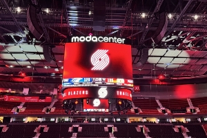 開拓者主場(chǎng)摩達(dá)中心近日公布了全新的中場(chǎng)大屏幕以及球場(chǎng)周邊曲面屏的升級(jí)。
