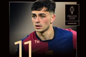 體育資訊09月27日訊 今日《法國足球》官方公布了金球獎評選的投票細節(jié),其中西班牙/巴薩中場佩德里在100位記者中僅獲得了31人的投票,最終獲得124分,位列金球第11名,落后第10的努諾-門德斯47分。