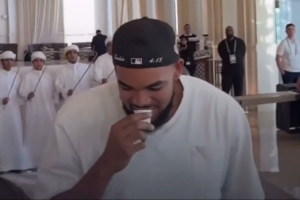 尼克斯全隊(duì)抵達(dá)阿布扎比受到熱烈歡迎,他們將在這里和76人進(jìn)行兩場(chǎng)季前賽的比賽。