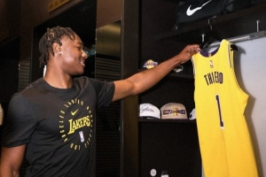 體育資訊9月30日訊 湖人媒體日,新秀阿杜-蒂耶羅出席接受采訪。