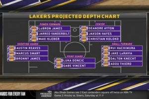 美媒曬湖人新賽季15人大名單陣容人員儲(chǔ)備: