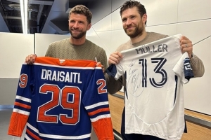 穆勒與德國冰球選手德賴塞特爾交換球衣并合影,后者效力于NHL埃德蒙頓油人隊(duì),也是司職前鋒,兩人社媒轉(zhuǎn)發(fā)合照,并互稱對方為傳奇。