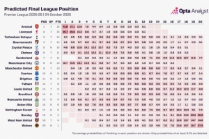 此役過(guò)后,數(shù)據(jù)機(jī)構(gòu)OPTA超級(jí)計(jì)算機(jī)預(yù)測(cè)本賽季英超冠軍↓