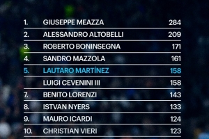 據(jù)國米官方統(tǒng)計,勞塔羅為國米攻入158球,排名隊史射手榜第5位。