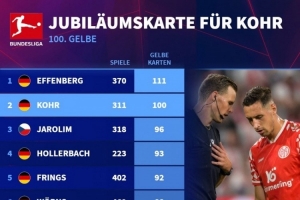 體育資訊10月7日訊 德國(guó)轉(zhuǎn)會(huì)市場(chǎng)統(tǒng)計(jì)了球員在德甲聯(lián)賽中吃到黃牌的數(shù)量,并列出榜單,埃芬博格111黃居首,科赫100黃次席。