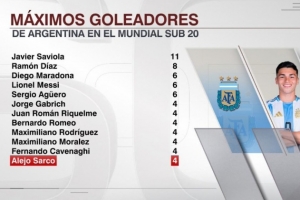 體育資訊10月9日訊 ESPN統(tǒng)計了阿根廷球員在世青賽歷史上的進(jìn)球數(shù)量,并列出世青賽歷史阿根廷球員射手榜,薩維奧拉11球斷層居首,馬拉多納、梅西、阿圭羅6球,薩爾科本屆賽事打進(jìn)4球上榜。