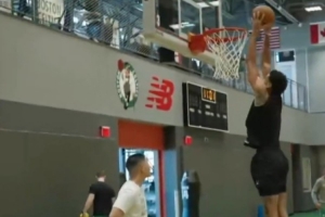 由視頻可見,塔圖姆已經(jīng)可以在原地起跳完成雙手扣籃,塔圖姆配文寫道:“一定是鞋子的原因?????!?/p>