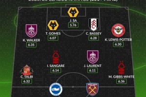 后衛(wèi):沃克(伯恩利)、托迪-戈麥斯(狼隊)、巴錫(富勒姆)、劉易斯-波特(布倫特福德)