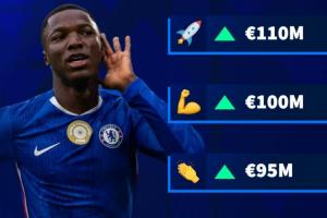 凱塞多目前身價(jià)為9000萬歐,此次更新最高將漲至1.1億歐,成為英超第10位億元先生,最低將下跌至8500萬歐。