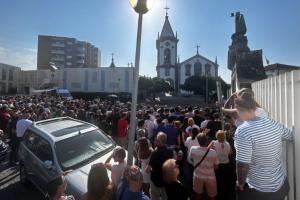 記者表示,當?shù)厝撕颓蛎砸黄鹪诮烫猛鈦辛?,許多人穿著球衣,外面掛著葡萄牙國旗。教堂的另一邊時不時傳來莊嚴的掌聲,記者推測大概是親密親屬聚集的地方。