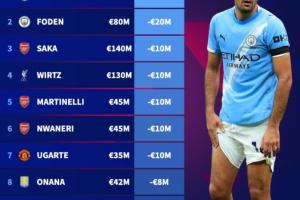 曼城億元先生-2!羅德里、福登身價同跌2000萬,都跌至億元以下
