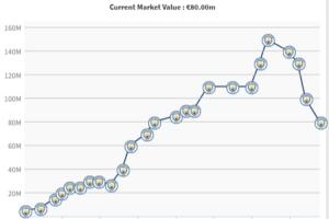 體育資訊10月17日訊 今日德轉(zhuǎn)更新英超球員身價,25歲福登身價跌出億元,目前為8000萬歐,對比1年前1.5億歐的身價已經(jīng)腰斬。