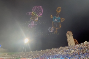 3000架無人機出現(xiàn)在了揚州體育公園體育場上空,組成了各種代表性的圖案,為蘇超聯(lián)賽助興。