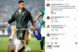 恩佐也在個人社媒曬出本場照片,配文寫道:“我們晉級半決賽!藍軍球迷們享受這一刻吧,我們會為勝利竭盡全力,以配得上這支俱樂部?!?/p>