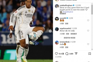 貝林厄姆社媒曬出比賽照片,配文:“在這里比賽從來(lái)都不輕松,但以一場(chǎng)苦戰(zhàn)拿下三分,開(kāi)啟新的一周。”