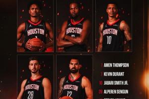 值得一提的是,這是一套“五大”陣容,五人身高分別為:阿門2米01、杜蘭特2米11、小史密斯2米11、申京2米11、亞當斯2米11,首發(fā)平均身高為2米09。