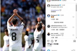 巴爾韋德為皇馬踢滿全場,賽后他在社交媒體上曬出謝場照片,配文:“又近一步。”
