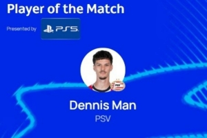 本場比賽埃因霍溫球員丹尼斯-曼發(fā)揮出色,梅開二度,4次射門,跑動距離達到11km,賽后他也當選歐冠官方評選出的本場最佳球員。