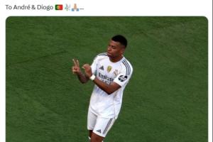 體育資訊07月06日訊 皇馬3-2戰(zhàn)勝多特晉級4強,姆巴佩賽后曬照再次悼念離世迪奧戈-若塔和他弟弟安德烈。