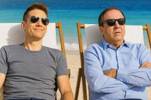 GSW Ball Report曬出勇士總經(jīng)理小鄧?yán)S和老板拉科布一起度假的合成圖,并寫道: