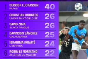 本賽季歐冠贏得對(duì)抗榜:馬修斯-席爾瓦33次第一,佩德里21次第八