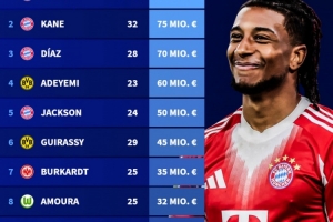 3、路易斯-迪亞斯(拜仁):7000萬(wàn)歐元