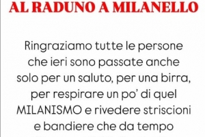 聲明中寫道:“明天我們不會(huì)在米蘭內(nèi)洛的季前首訓(xùn)時(shí)集結(jié)。我們感謝昨天(在南看臺(tái)年終聚會(huì)上)所有來訪的朋友,不管是來打個(gè)招呼、喝杯啤酒,還是為了感受那份‘米蘭主義’,并重新看到那些早已在球場被禁止的橫幅和旗幟……向前走,Ultras,向前走,紅黑米蘭主義者!”