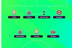 后衛(wèi):卡什(阿斯頓維拉)、佳夫(紐卡斯?fàn)枺⒎兜路遥岽蹋?、邁克爾-卡約德(布倫特福德)