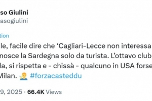 朱利尼寫(xiě)道:“親愛(ài)的卡迪納萊,當(dāng)你對(duì)(卡利亞里主場(chǎng)所在地)撒丁島的了解僅限于游客視角時(shí),說(shuō)‘沒(méi)人關(guān)心卡利亞里對(duì)陣萊切的比賽’會(huì)很容易。作為意大利球迷數(shù)量排名第八的俱樂(lè)部,卡利亞里既有觀眾關(guān)注,也備受尊重。而且誰(shuí)知道呢,在美國(guó),或許支持卡利亞里的人比支持米蘭的還多(注:在美國(guó)有很多來(lái)自撒丁島移民的后裔)。”