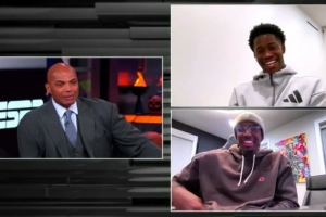 巴克利對(duì)馬克西說(shuō)道:“你已經(jīng)拿到大合同了,這是你應(yīng)得的。為什么不給小伙子(埃奇庫(kù)姆)買(mǎi)點(diǎn)東西裝飾一下他的墻壁呢?你家里掛著那么多漂亮的畫(huà),他卻只有普通的白墻?!?/p>