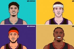 其中拉梅洛-鮑爾在4場比賽的第一節(jié)比賽共計(jì)得到45分,里夫斯在4場比賽的第二節(jié)比賽共計(jì)得到48分,布克在5場比賽的第三節(jié)比賽共計(jì)得到57分,馬克西4場比賽的第四節(jié)則是共計(jì)53分。