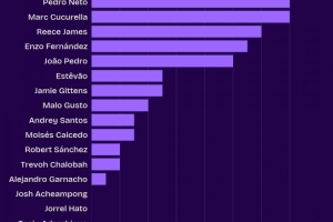 體育資訊10月31日訊 數(shù)據(jù)機構(gòu)squakwa統(tǒng)計了本賽季切爾西隊內(nèi)的英超創(chuàng)造機會情況,庫庫雷利亞和內(nèi)托并列居首。