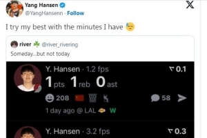 某網(wǎng)友在社媒發(fā)文表示賽季至今的5場(chǎng)比賽小楊得分依次是2分、2分、2分、1分、2分,并配文寫道:“我知道他會(huì)打出來(lái),但不是現(xiàn)在!”。假冒楊瀚森賬號(hào)則在社媒上回復(fù)道:“我會(huì)在能獲得的時(shí)間里用盡全力?!边@一回復(fù)被“Sporting News”的編輯誤以為是楊瀚森本尊于是他們撰寫了新聞并發(fā)出(如下所示)。