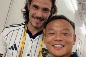 周通在社媒曬出了參加這屆世俱杯的照片并配文寫道: