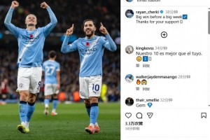 體育資訊11月3日訊 2025-26賽季英超第10輪,曼城3-1戰(zhàn)勝伯恩茅斯。賽后,本場比賽送出2次助攻的謝爾基在社交媒體慶祝球隊獲勝。
