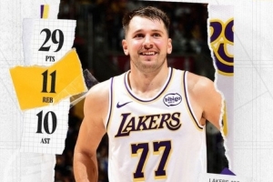 東契奇本場比賽砍下29分11板10助,賽季首次達成三雙。