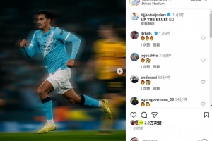 賴因德斯社媒曬出比賽照片,慶祝球隊取勝,配文:“加油藍月?!?/p>