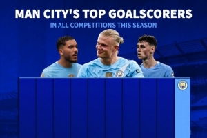 體育資訊11月6日訊 歐冠聯(lián)賽階段第四輪比賽,哈蘭德破門,曼城主場(chǎng)4-1擊敗多特,德國(guó)轉(zhuǎn)會(huì)市場(chǎng)列出了本賽季曼城隊(duì)內(nèi)射手榜,哈蘭德18球居首,其他球員合計(jì)打進(jìn)15球。