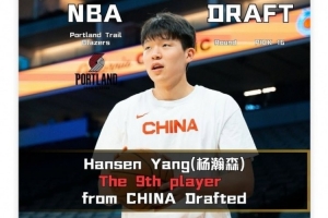 楊瀚森成為了歷史上第九位被NBA選中的中國球員。中國男籃國家隊集訓隊友趙維倫在INS轉發(fā)報道并寫道:“為你感到驕傲?!?/p> 楊瀚森首輪16順位被開拓者選中