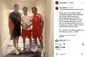 體育資訊6月26日訊 目前穆勒正跟隨拜仁征戰(zhàn)世俱杯,這將是穆勒為拜仁效力的最后時(shí)光。穆勒更新社交媒體曬出兩位骨科醫(yī)生贈送的告別小禮物,并感謝他們?yōu)樽约鹤龅囊磺小?/p>