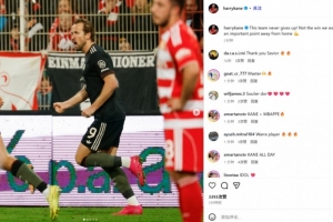 凱恩也在賽后通過社媒曬出自己進(jìn)球后的慶祝照,并配文:“這支球隊永不放棄!沒拿到我們想要的勝利,但從客場帶走重要一分??”。