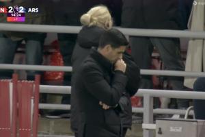 體育資訊11月9日訊?阿森納本輪2-2戰(zhàn)平桑德蘭,補時桑德蘭絕平,場邊鏡頭給到了阿爾特塔。
