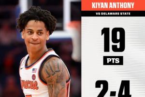 此役,卡梅隆·安東尼之子、雪城大學(xué)后衛(wèi)基揚(yáng)·安東尼迎來大學(xué)生涯第一次首發(fā),他表現(xiàn)十分高效,全場(chǎng)上陣29分鐘11投8中,三分4中2、罰球4中1,砍下19分3籃板4助攻1搶斷,沒有失誤。