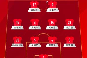 中場(chǎng):6-黃政宇(山東泰山)、14-高天意(上海申花)、23-謝文能(山東泰山)、15-王鈺棟(浙江隊(duì))