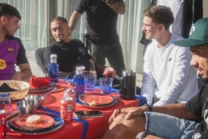 阿勞霍積極倡導(dǎo)這類團(tuán)隊(duì)活動(dòng),拉菲尼亞也在Instagram中分享了多張聚餐照片。我們可以看到阿勞霍與隊(duì)友們以及包括理療師在內(nèi)的俱樂部員工圍坐在餐桌旁,桌上鋪著藍(lán)紅相間的桌布,彰顯了對(duì)俱樂部的熱愛。