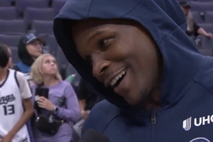 體育資訊11月10日訊 NBA常規(guī)賽,森林狼144-117大勝國王。賽后愛德華茲在場邊接受了采訪。